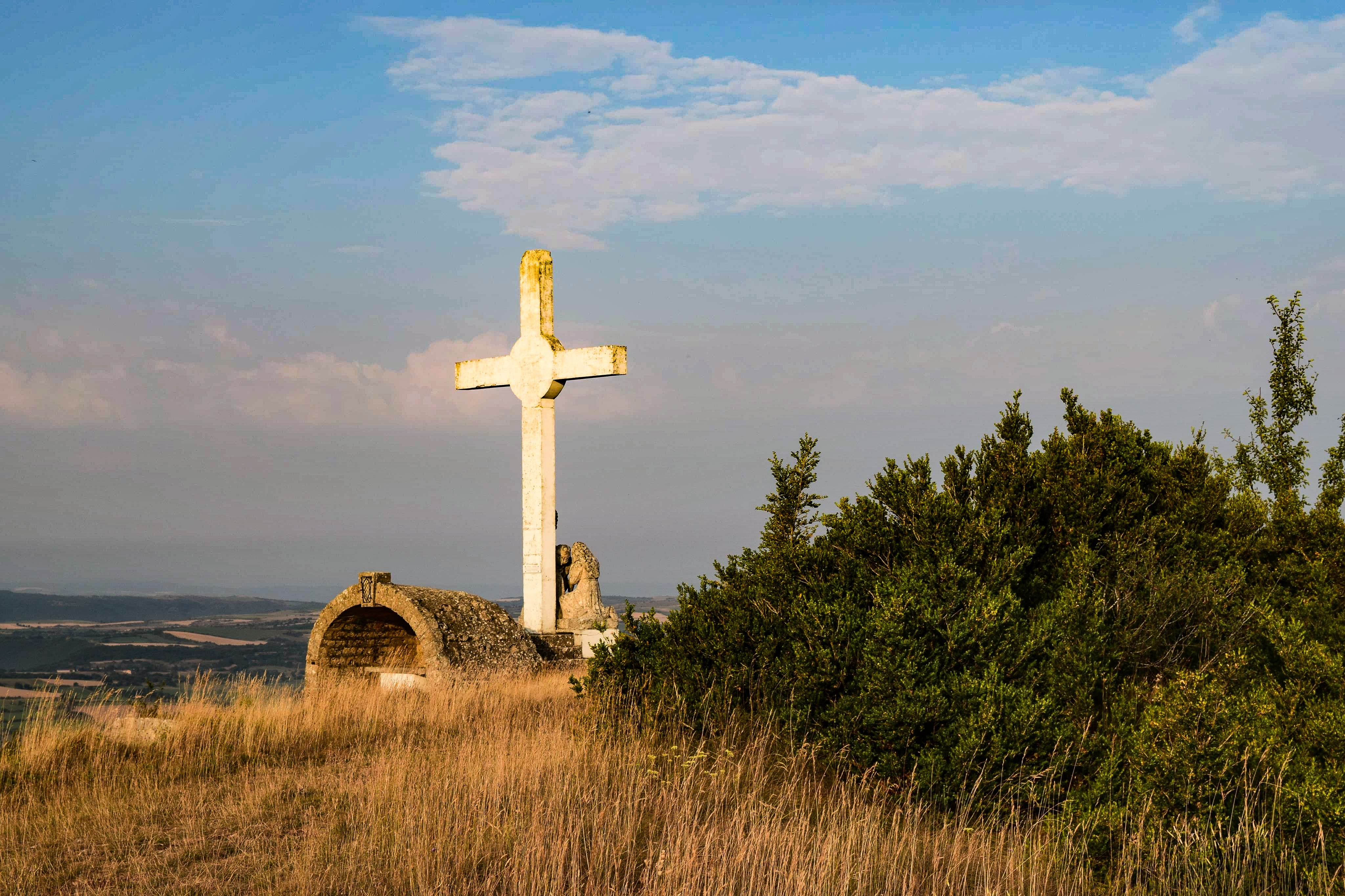 Magnifique petit endroit calme, serein et tranquille avec une énorme croix qui domine le village de Tournemire.